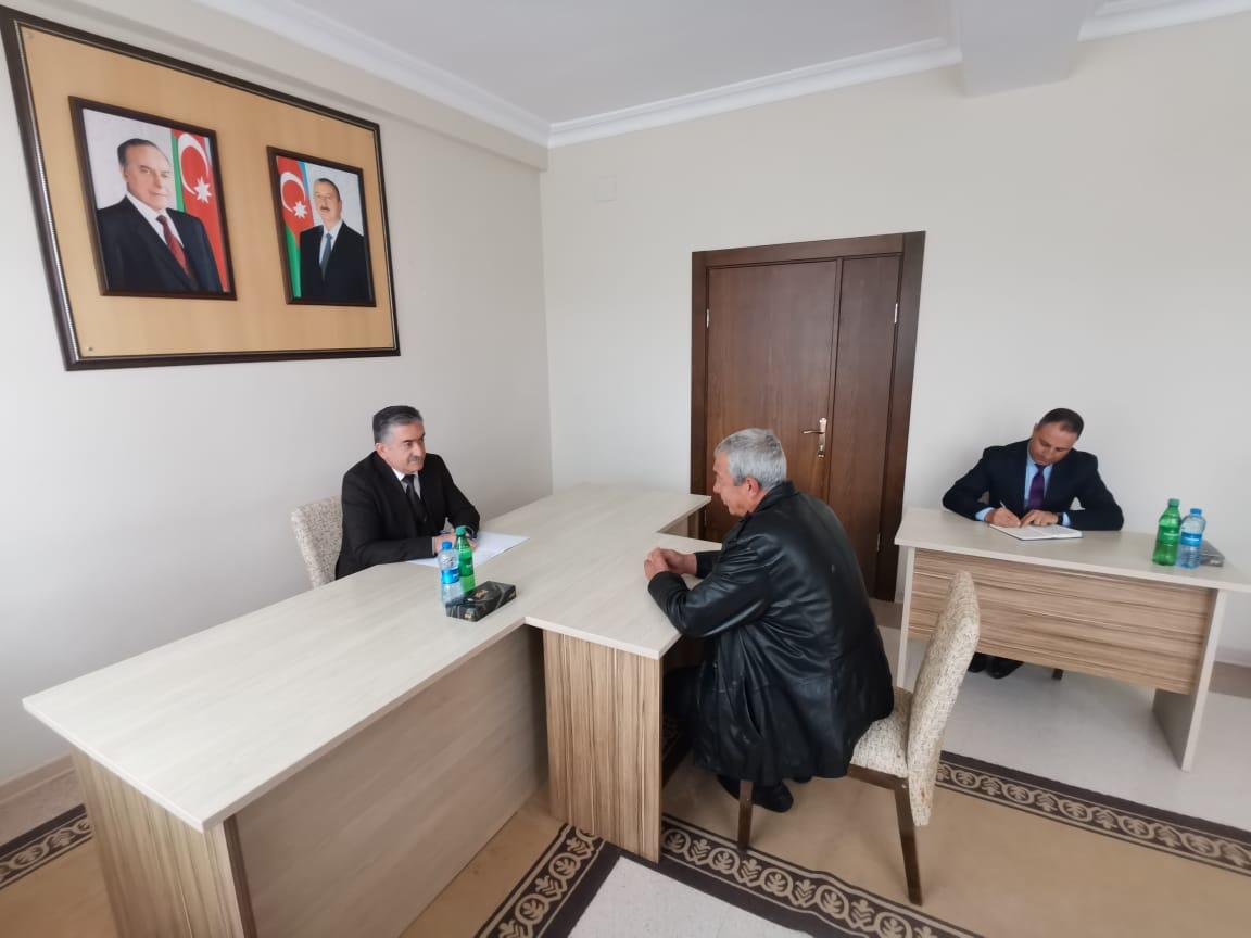 Şahbuz Rayon İcra Hakimiyyətinin başçısı Rəfael Babayev rayonun idarə, müəssisə və xidmət sahələrinin rəhbərlərinin iştirakı ilə Güney Qışlaq kəndinin sakinlərini növbəti dəfə fərdi qəbul edib, müraciətlərini dinləyib.