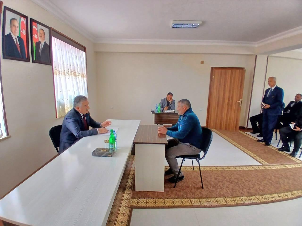 Şahbuz Rayon İcra Hakimiyyətinin başçısı Rəfael Babayev rayonun idarə, müəssisə və xidmət sahələrinin rəhbərlərinin iştirakı ilə Yuxarı Qışlaq kəndinin sakinlərini növbəti dəfə fərdi qəbul edib, müraciətlərini dinləyib.
